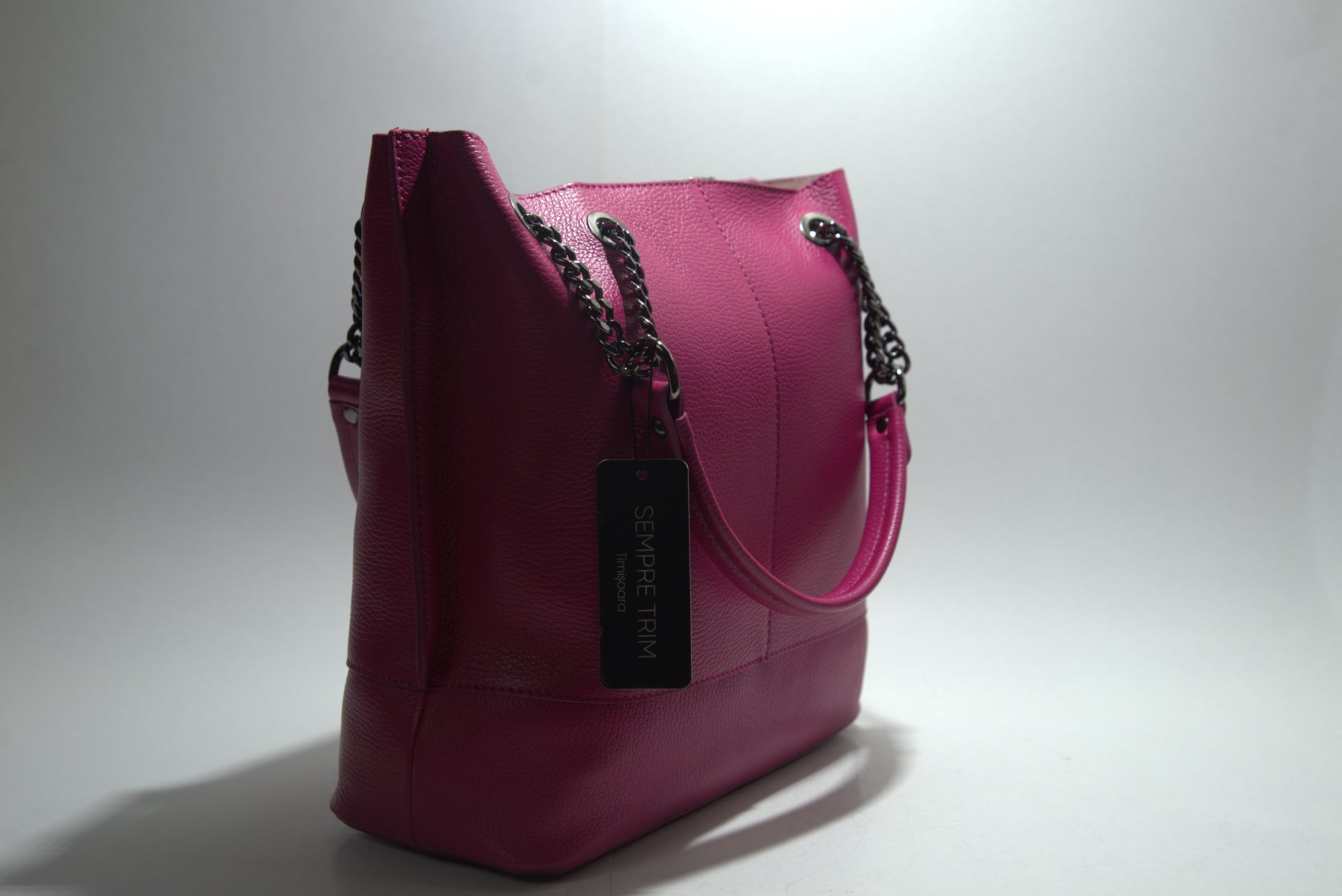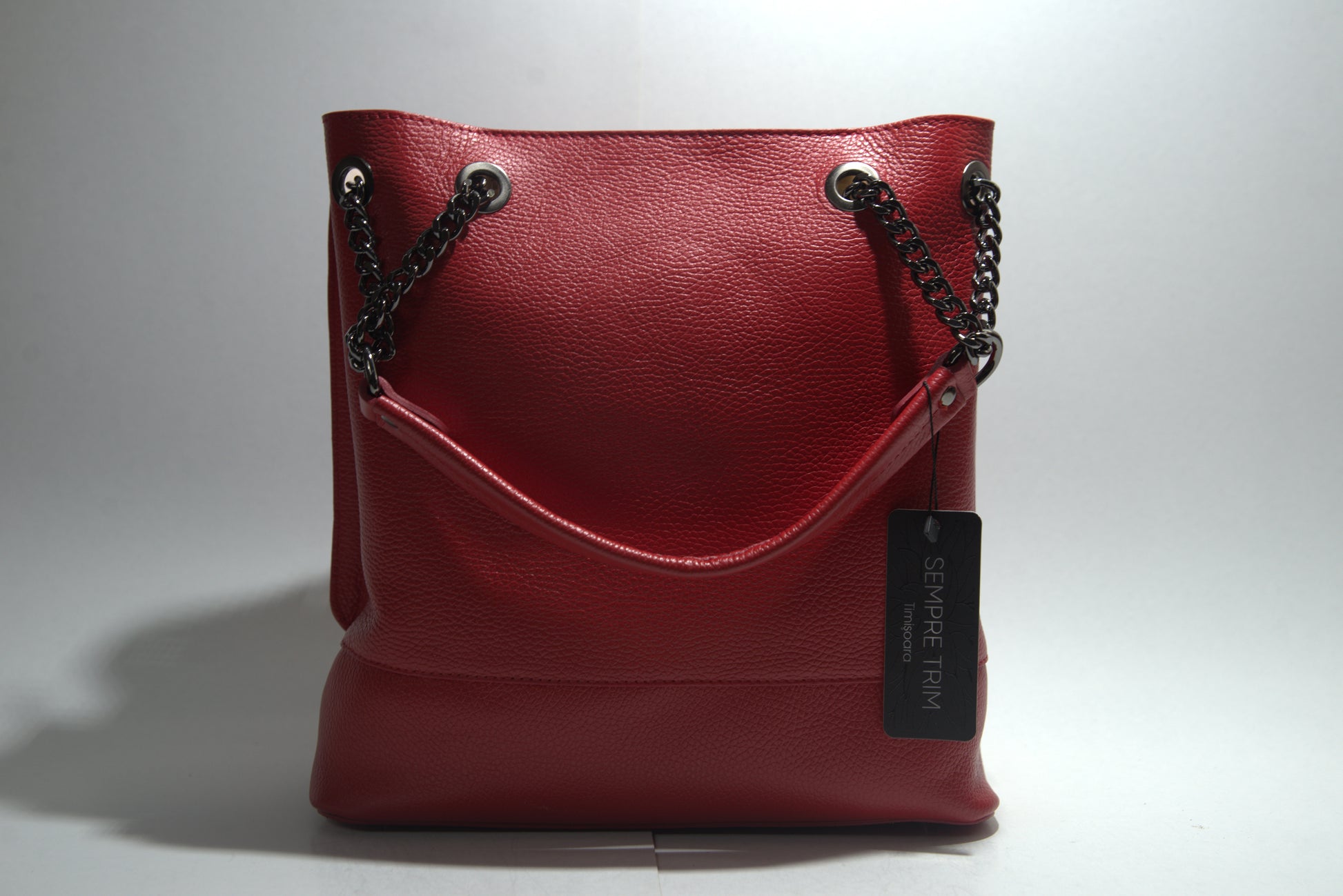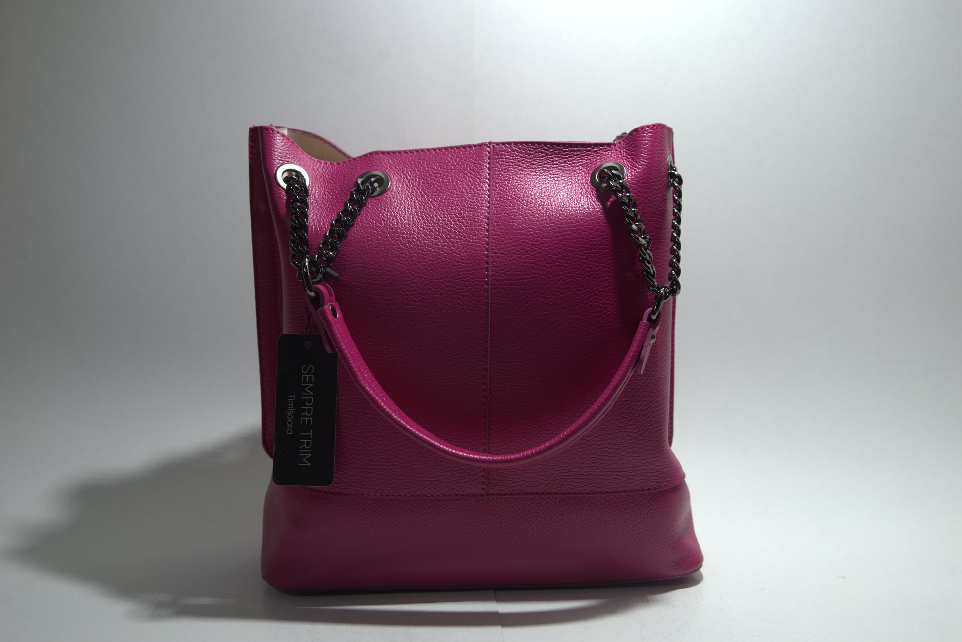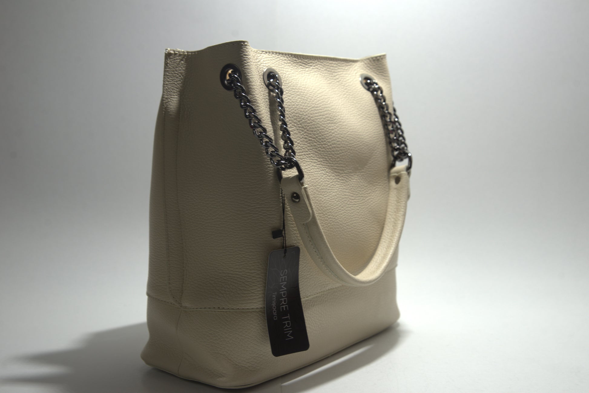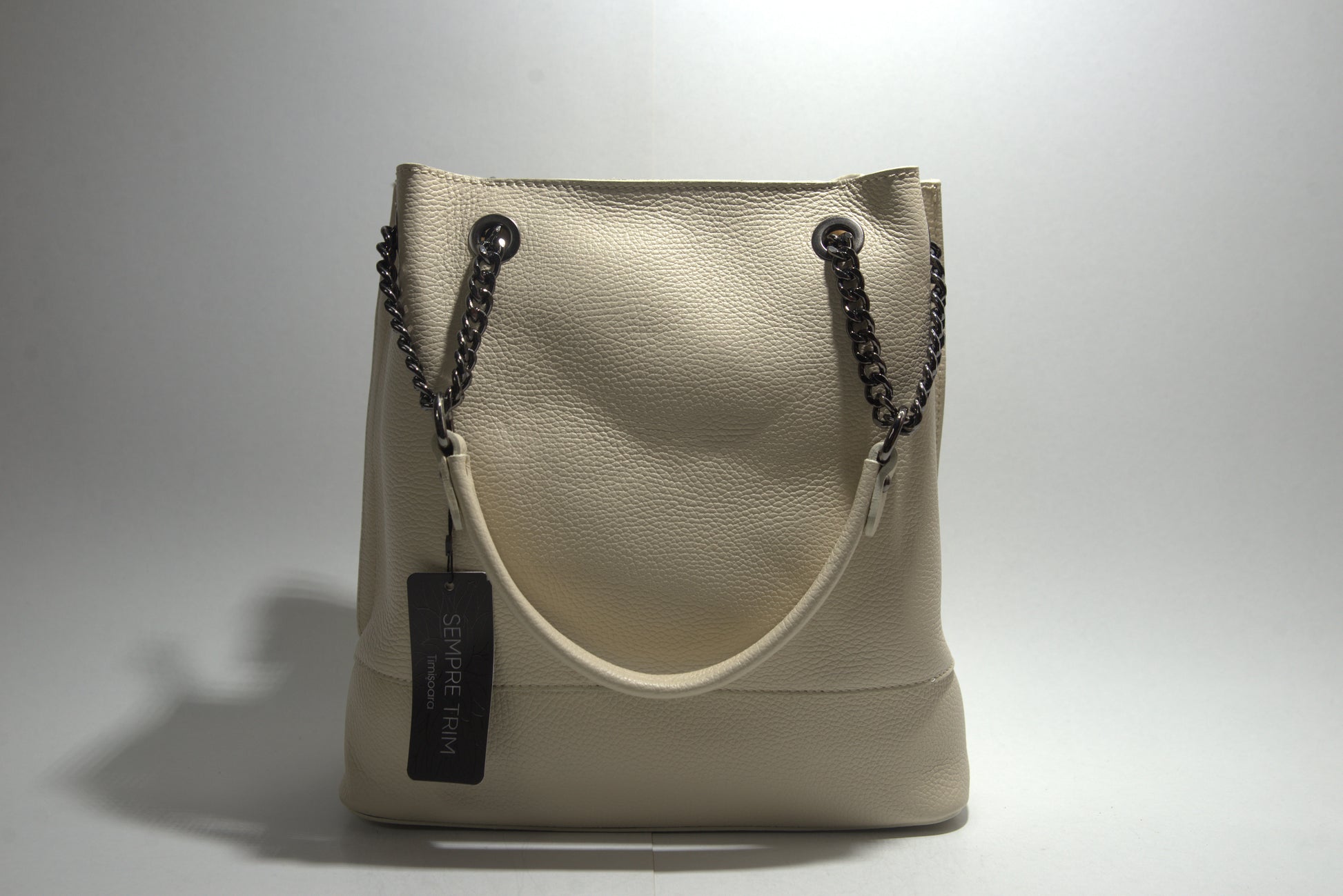 Această poșetă elegantă din piele naturală impresionează prin designul său sofisticat și detaliile atent lucrate. Fabricată din piele de înaltă calitate, poșeta are o textură pebbled care adaugă un plus de rafinament. Dispune de un compartiment principal spațios, perfect pentru a-ți organiza esențialele zilnice. Mânerele sunt atașate cu lanțuri și inele metalice, oferind un aspect modern și funcțional. Poșeta este ideală pentru orice ocazie, fie că este vorba de o zi la birou sau o ieșire în oraș.