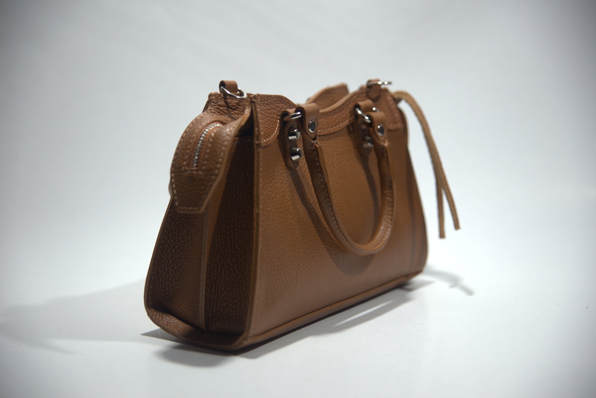 Această poșetă elegantă din piele naturală este accesoriul perfect pentru orice ocazie. Cu un design compact și structurat, poșeta oferă un echilibru ideal între stil și funcționalitate. Exteriorul texturat și detaliile de cusătură vizibile adaugă un plus de rafinament, în timp ce mânerele atașate cu elemente metalice asigură durabilitate și confort. Este alegerea ideală pentru femeile care apreciază calitatea și eleganța atemporală.