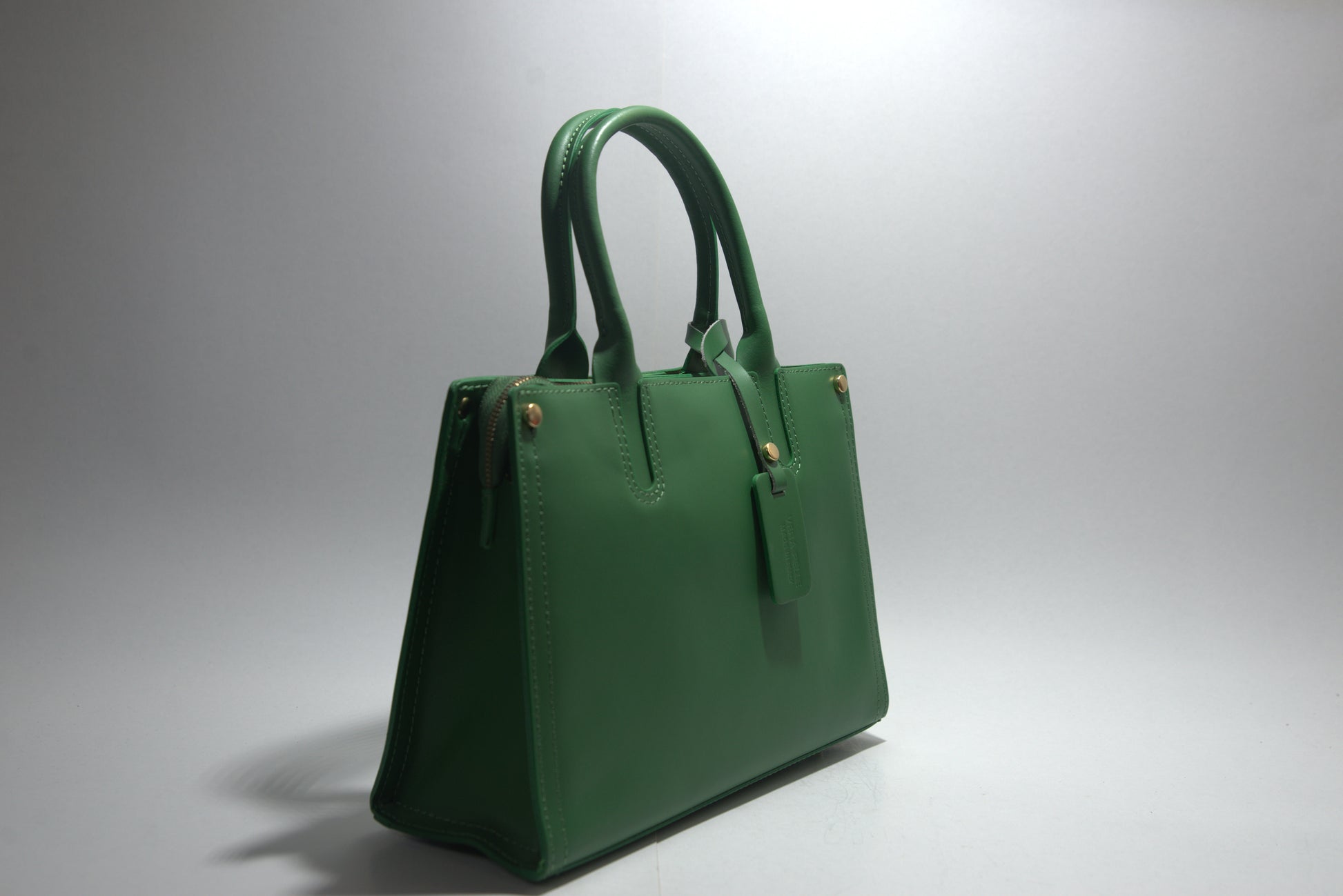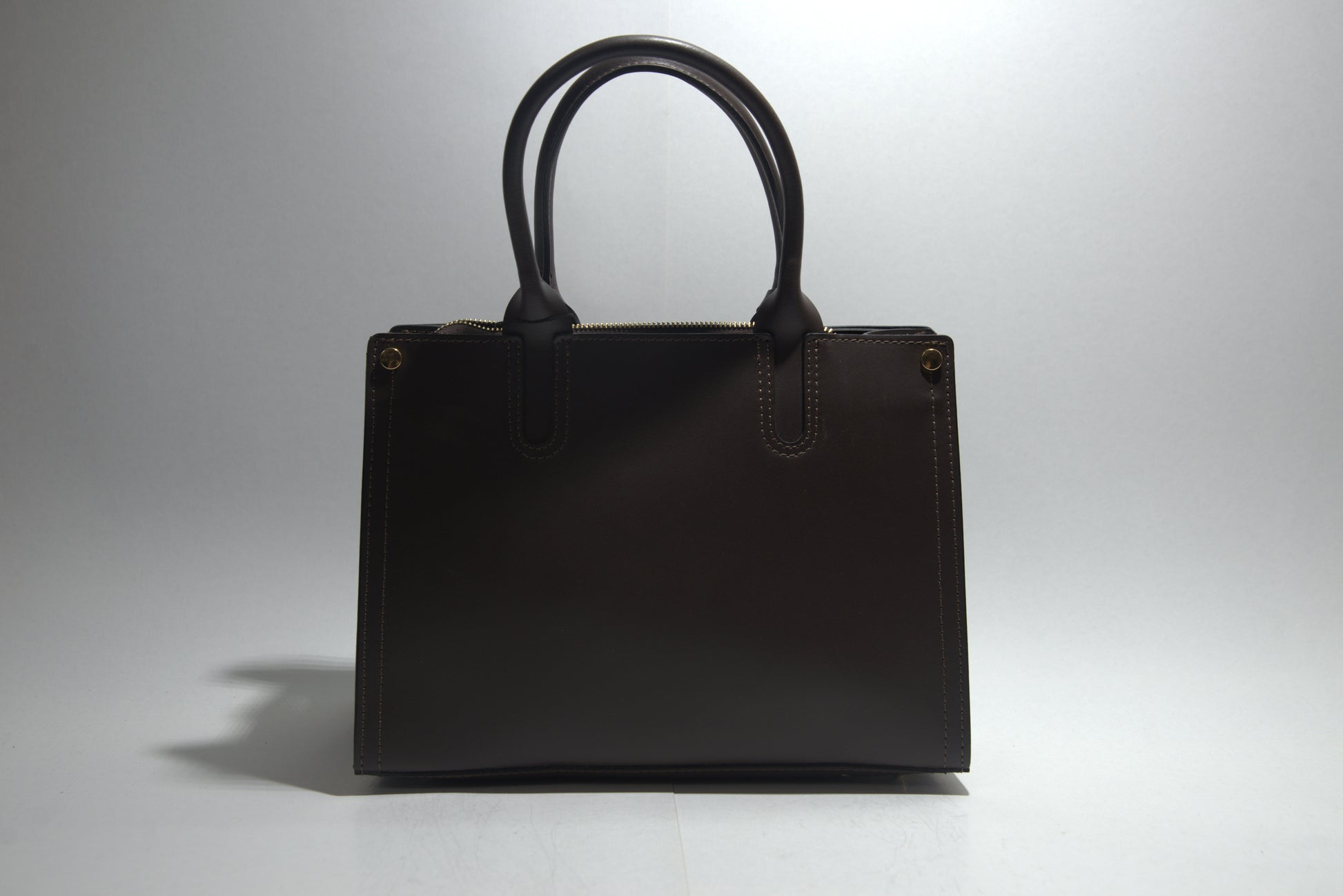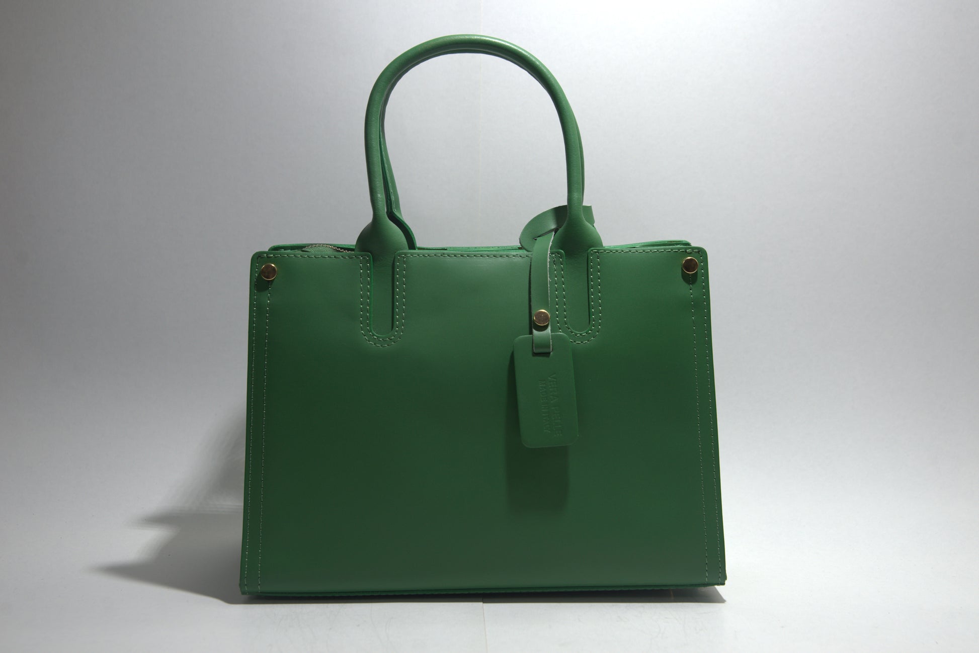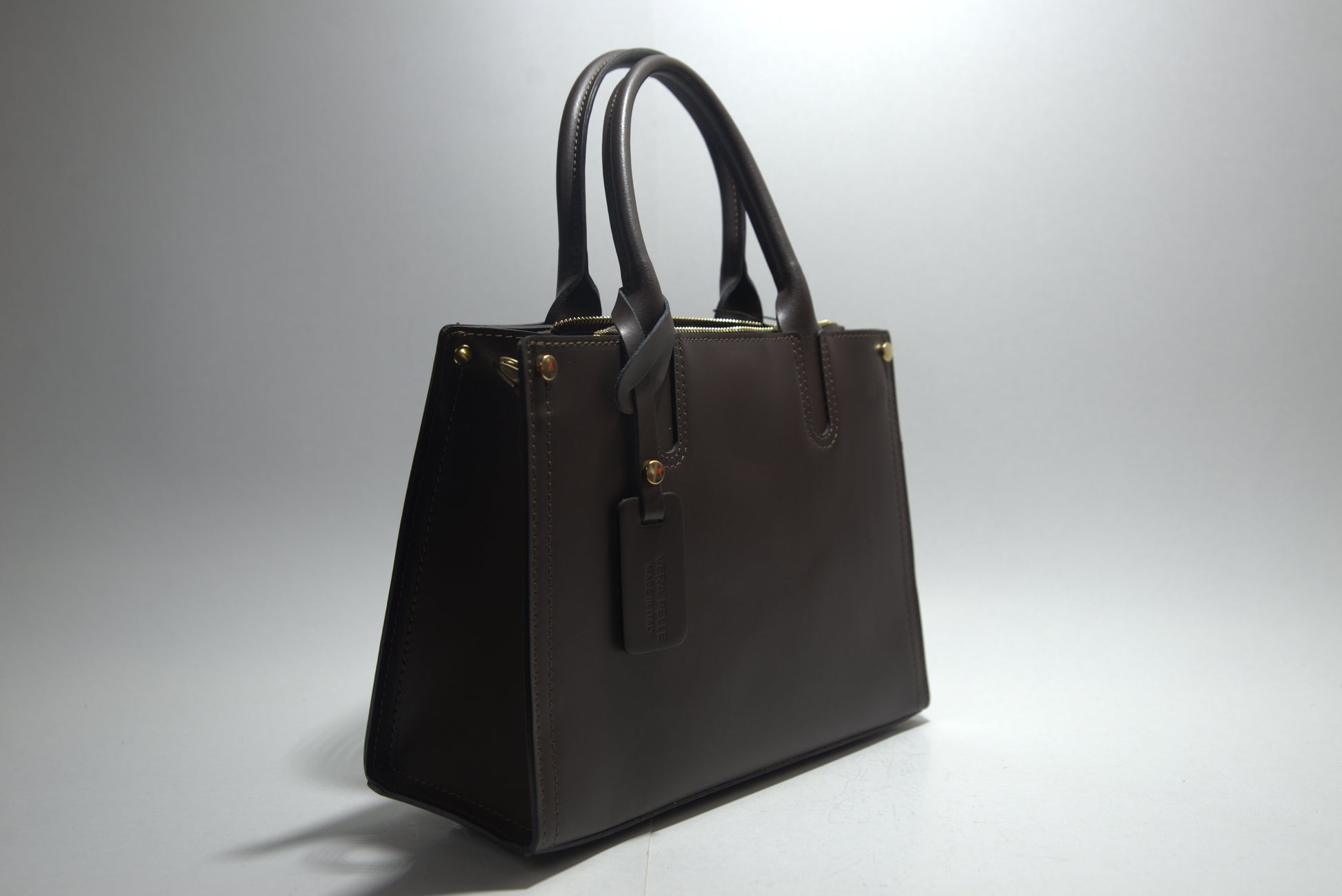 Această geantă elegantă este confecționată din piele naturală de înaltă calitate, prezentând un design structurat și minimalist. Modelul dispune de mânere solide pentru o prindere confortabilă și o etichetă decorativă atașată frontal pentru un plus de stil. Cusăturile precise și finisajele atente subliniază meșteșugul de excepție și durabilitatea accesoriului. Este o piesă versatilă care se potrivește perfect cu o varietate de ținute, fiind ideală pentru utilizarea zilnică sau pentru evenimente speciale.