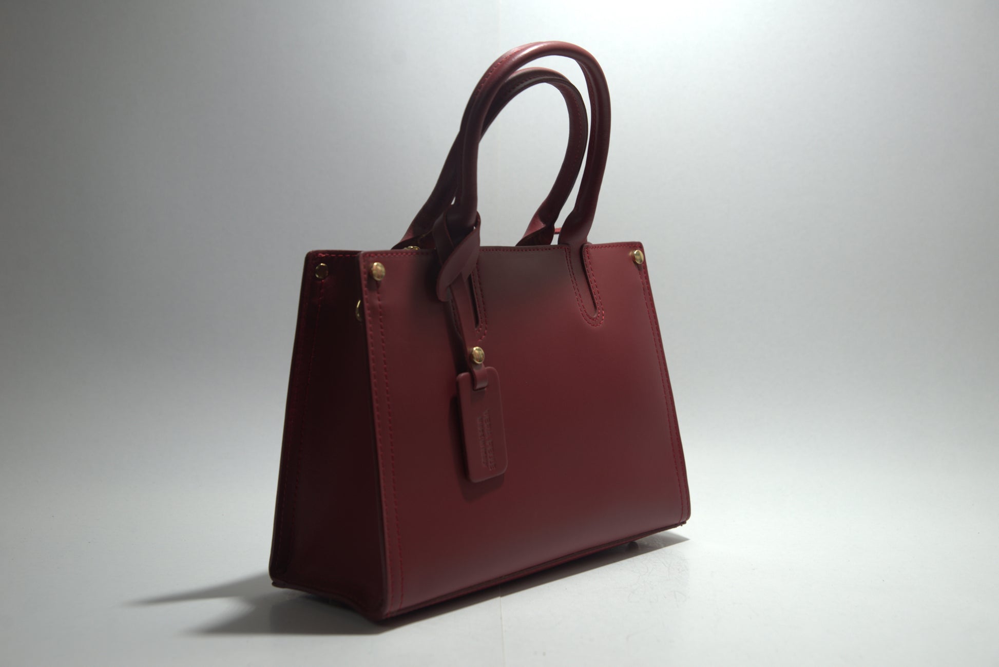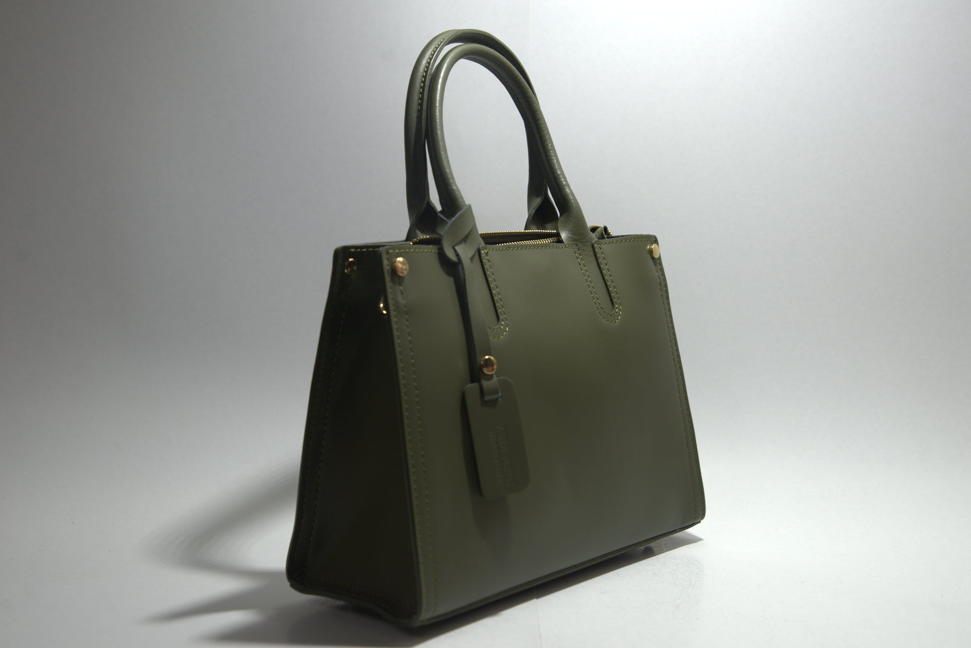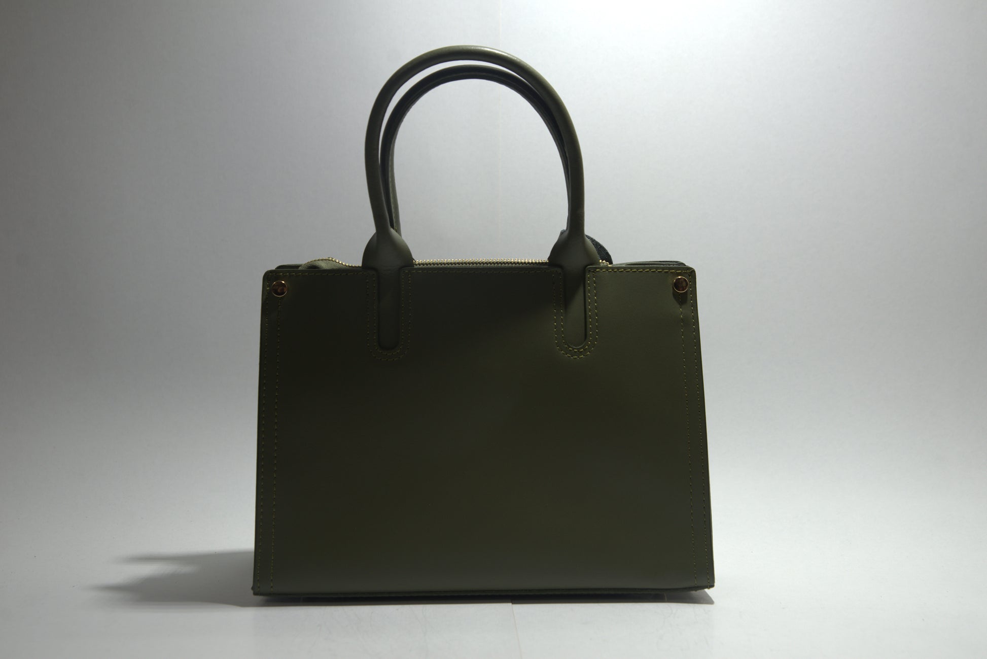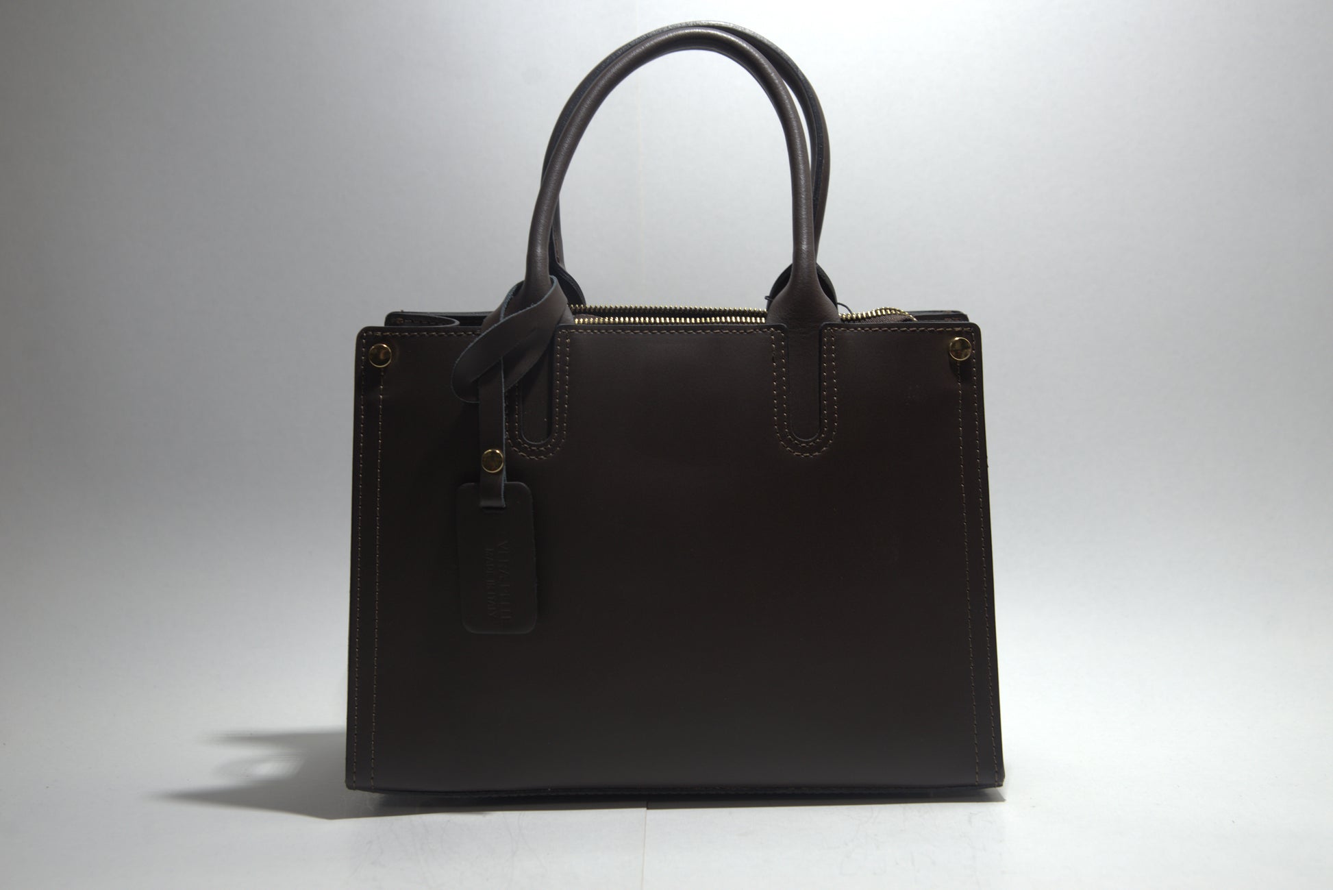 Această geantă elegantă este confecționată din piele naturală de înaltă calitate, prezentând un design structurat și minimalist. Modelul dispune de mânere solide pentru o prindere confortabilă și o etichetă decorativă atașată frontal pentru un plus de stil. Cusăturile precise și finisajele atente subliniază meșteșugul de excepție și durabilitatea accesoriului. Este o piesă versatilă care se potrivește perfect cu o varietate de ținute, fiind ideală pentru utilizarea zilnică sau pentru evenimente speciale.