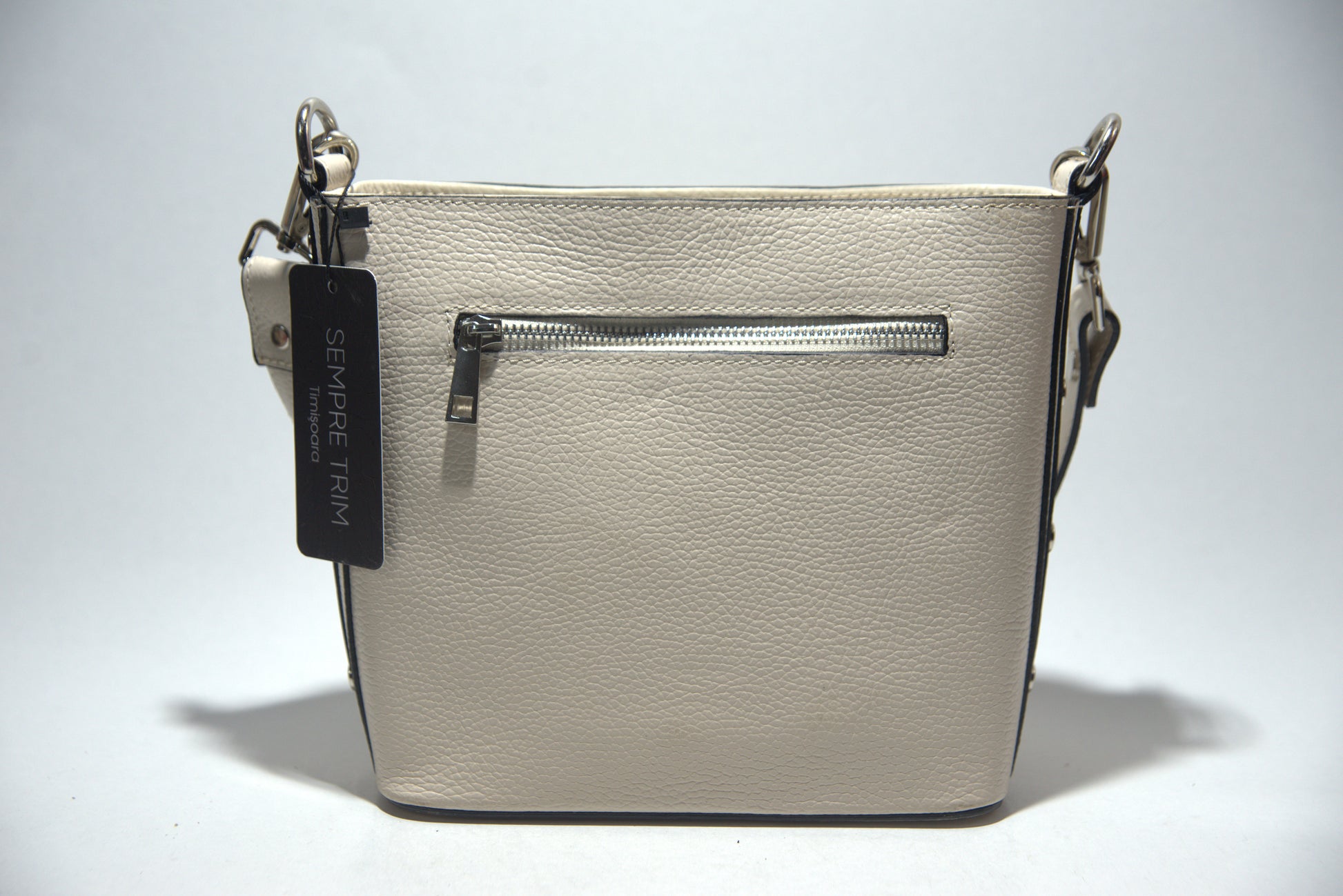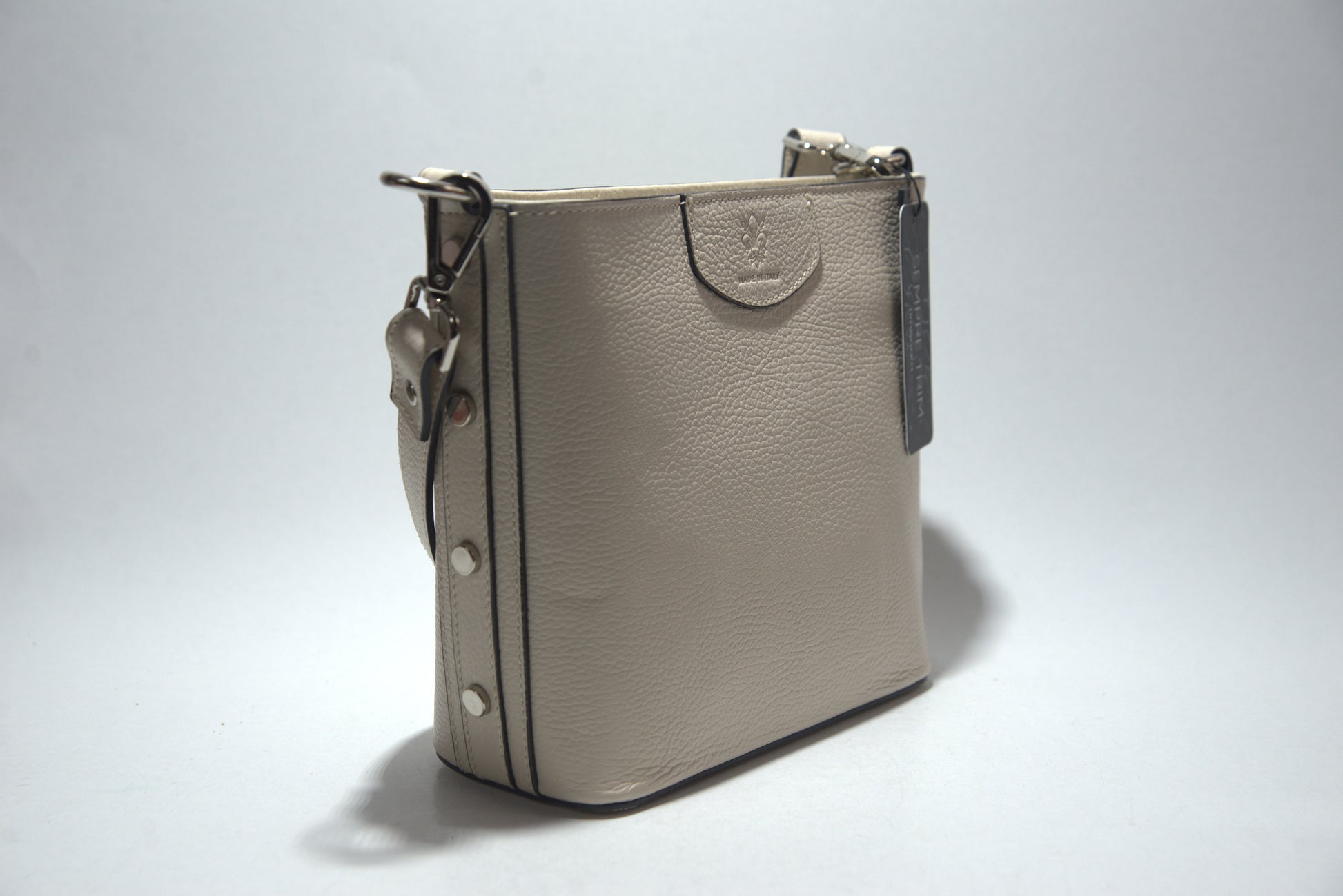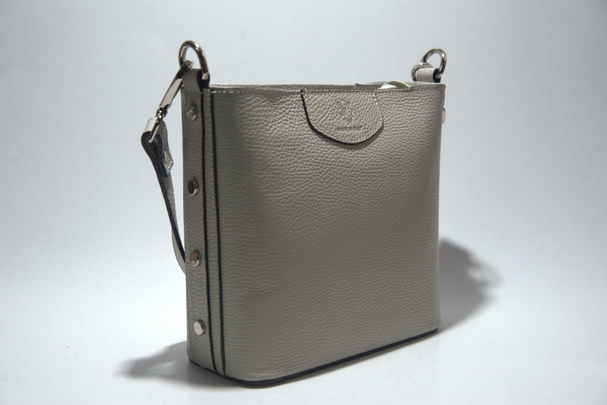 Această poșetă elegantă, confecționată din piele naturală de înaltă calitate, este accesoriul perfect pentru orice ocazie. Designul său clasic și rafinat este completat de detalii metalice subtile și un logo discret, embosat în partea superioară centrală. Poșeta dispune de un compartiment principal spațios, ideal pentru a păstra toate obiectele esențiale, și este prevăzută cu un fermoar robust pentru siguranță suplimentară.