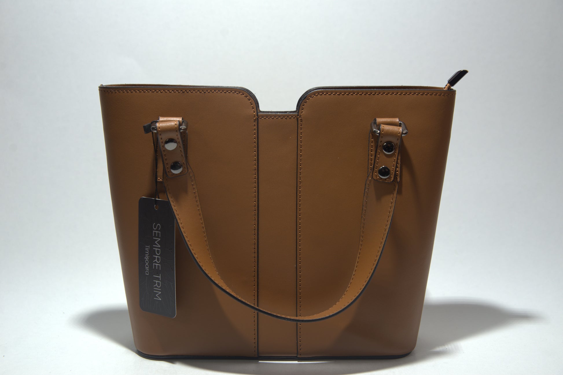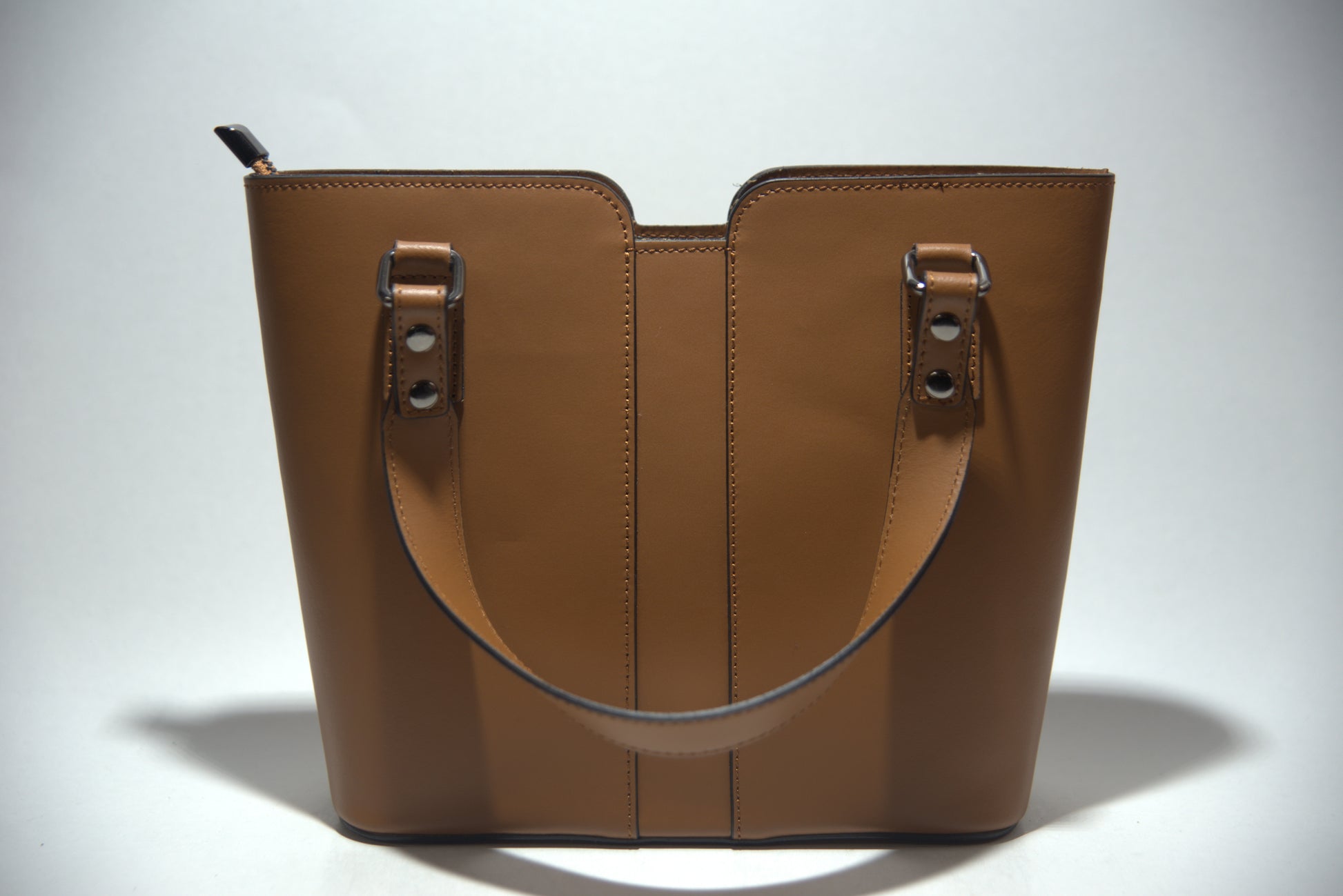 Această poșetă elegantă din piele naturală este perfectă pentru orice ocazie. Designul său structurat și vertical oferă un aspect sofisticat, completat de detalii de cusătură vizibile care adaugă un plus de rafinament. Poșeta dispune de două mânere robuste, atașate cu elemente metalice, asigurând atât durabilitate, cât și stil. Finisajul neted al pielii subliniază calitatea superioară a acestei piese, făcând-o un accesoriu esențial în garderoba oricărei femei.
