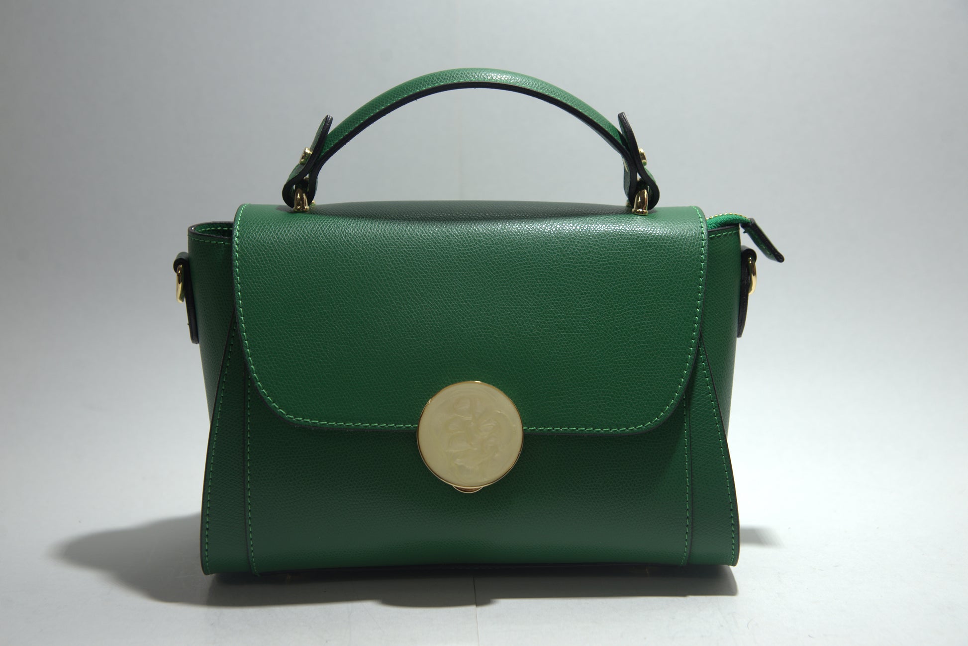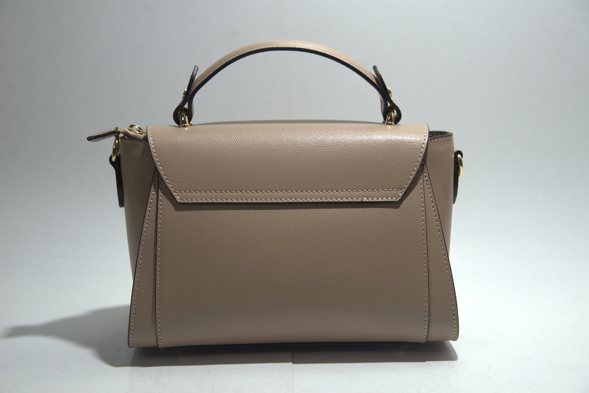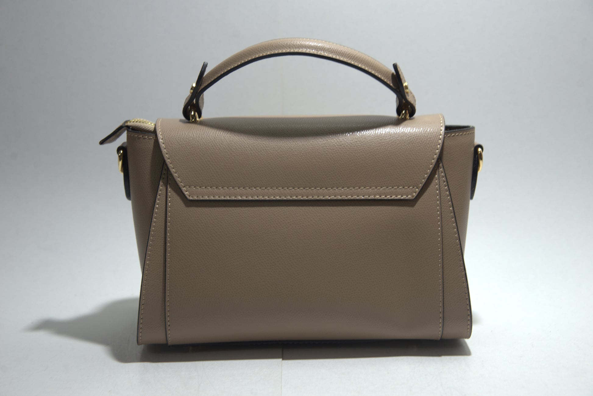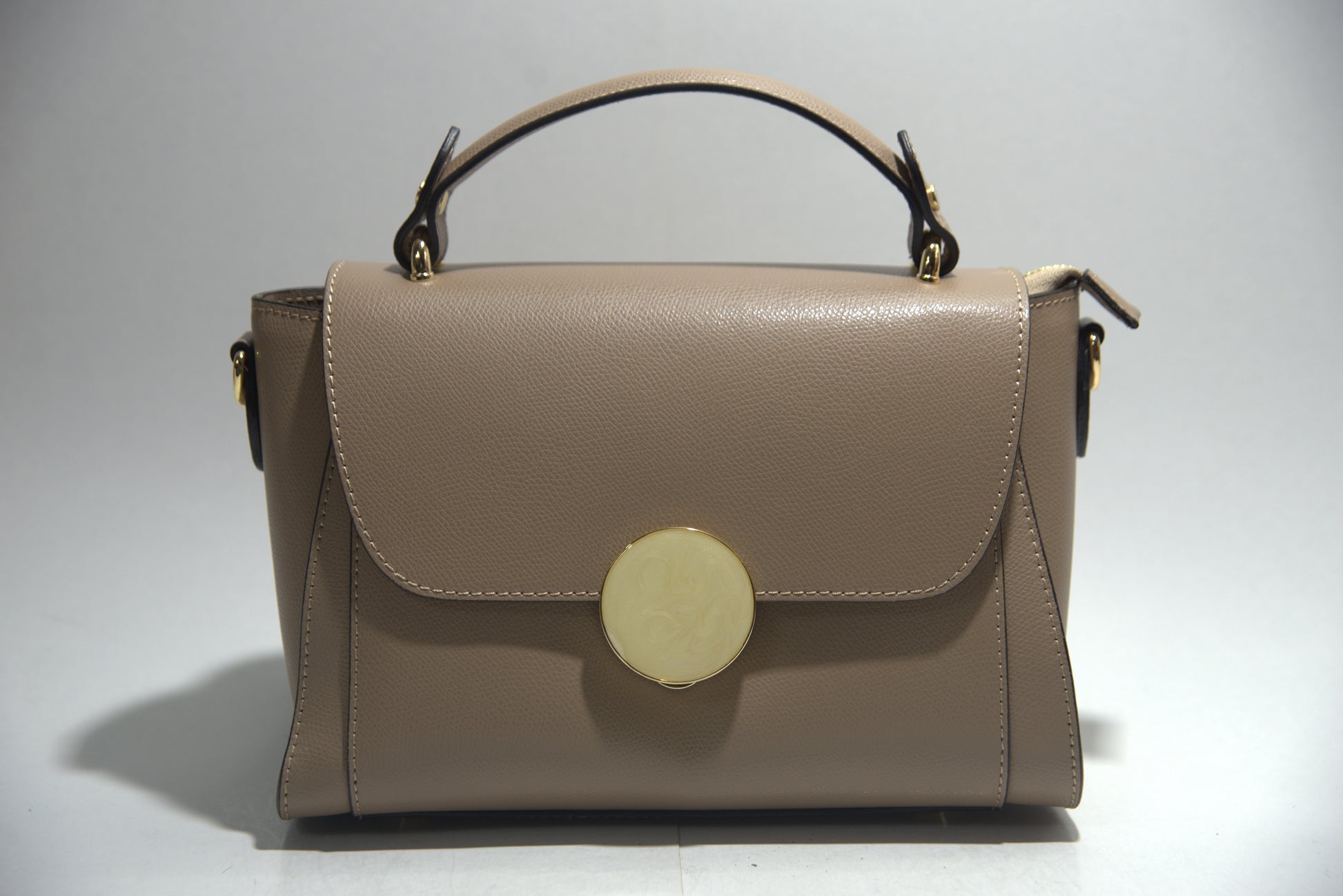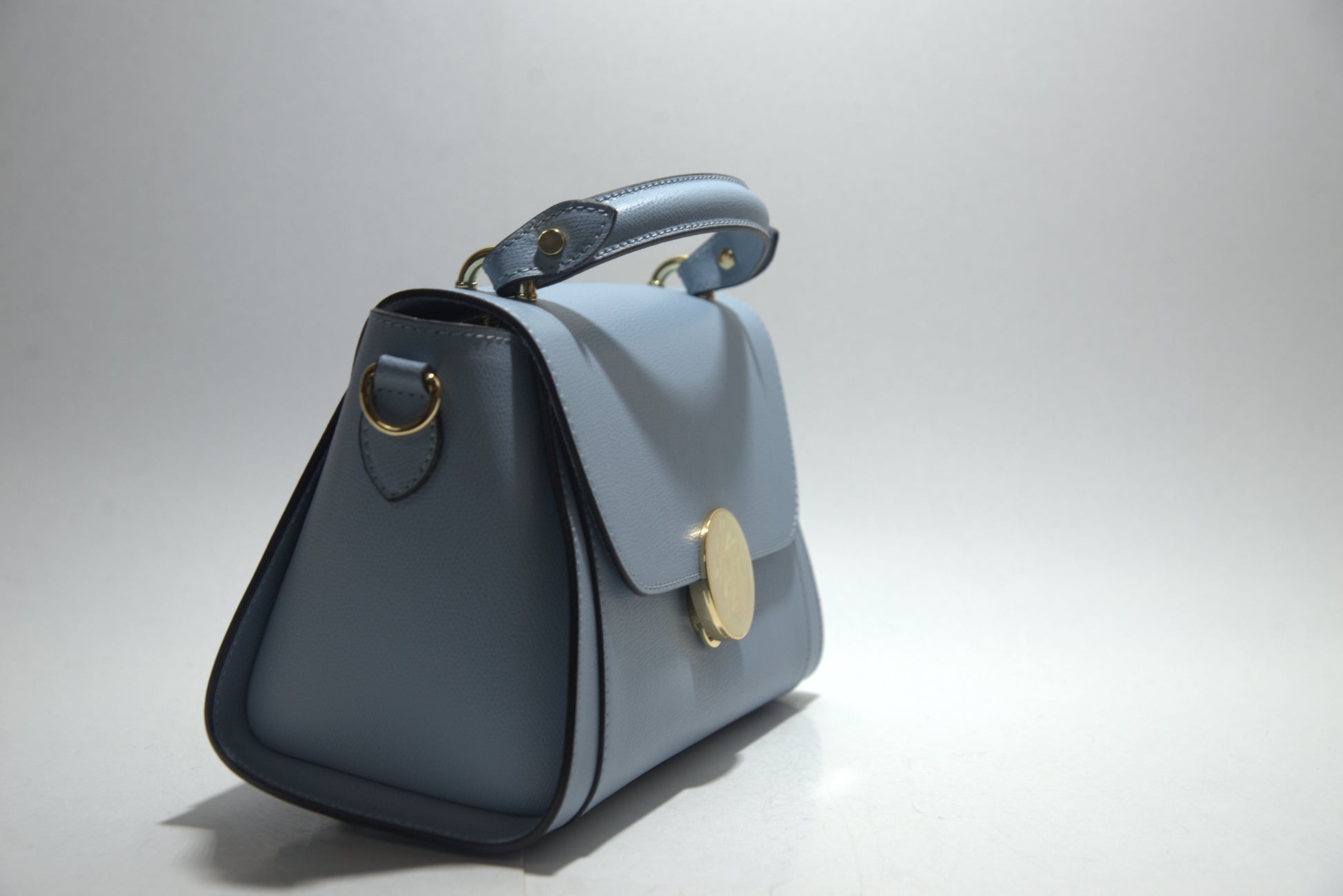 Această poșetă elegantă și structurată este perfectă pentru orice ocazie. Designul său sofisticat include o clapetă frontală cu închidere rotundă, metalică, de culoare aurie, care adaugă un plus de rafinament. Poșeta este prevăzută cu un mâner robust, atașat cu elemente metalice aurii, oferind atât stil, cât și funcționalitate. De asemenea, dispune de atașamente laterale pentru o curea de umăr, oferind versatilitate în purtare. Exteriorul texturat adaugă un aspect modern și distinctiv, făcând această poșetă un accesoriu de nelipsit din garderoba oricărei femei.