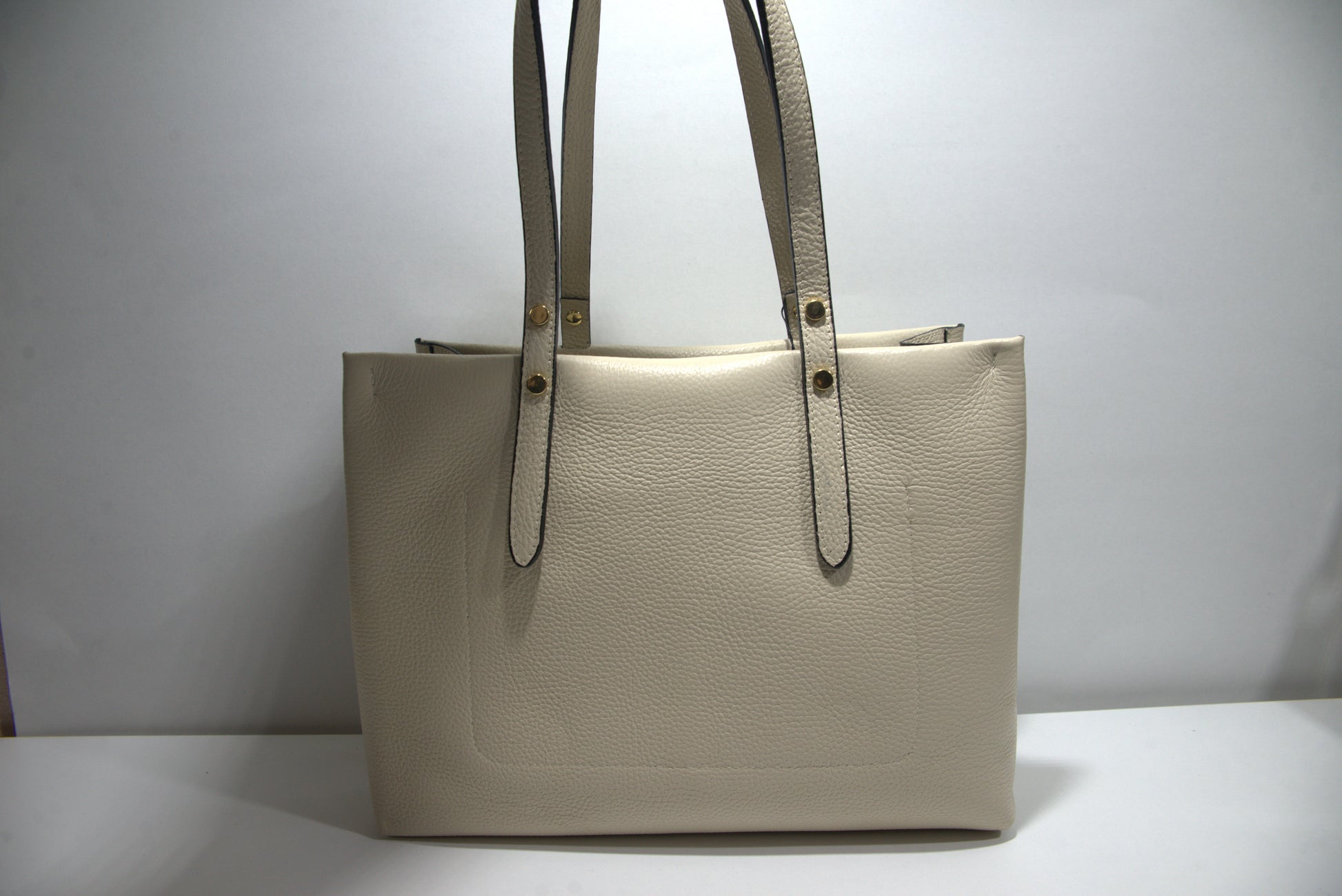 Această poșetă elegantă și versatilă este confecționată din piele naturală de înaltă calitate, cu un finisaj mat. Designul său minimalist, cu linii curate și fără branding vizibil sau ornamente, o face potrivită pentru diverse ocazii și ținute. Poșeta dispune de două mânere atașate cu cusături vizibile și elemente metalice, adăugând un plus de rafinament. Este ideală pentru cei care caută un stil clasic, care poate fi purtat atât în contexte profesionale, cât și casual.
