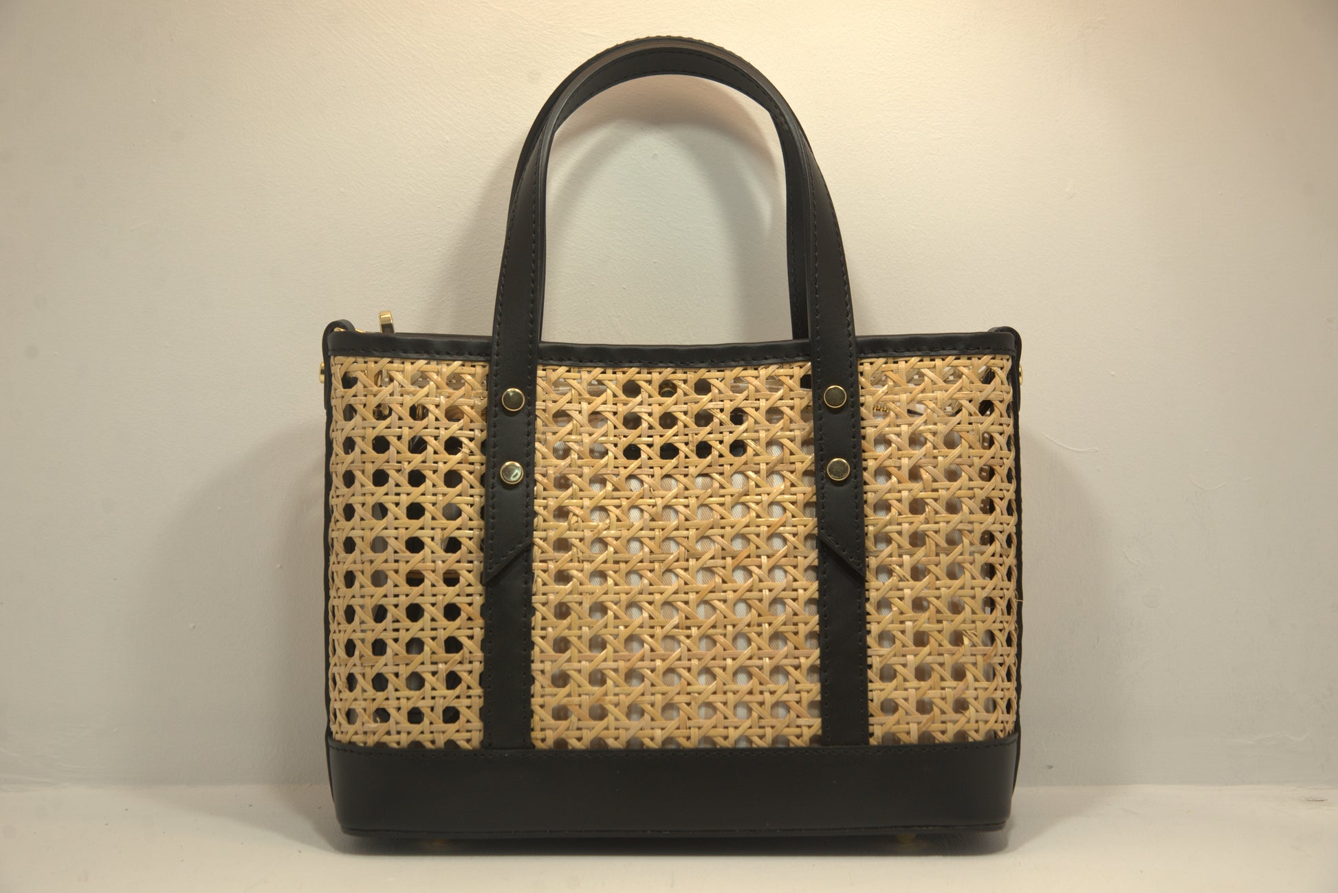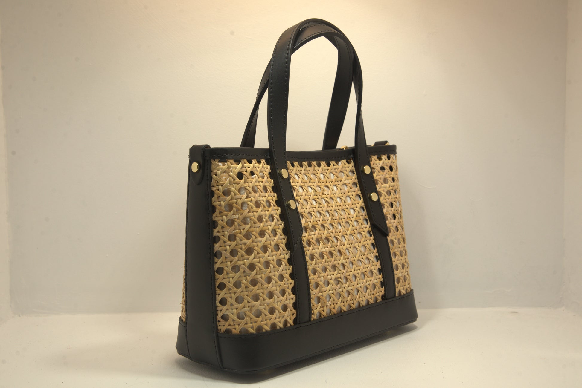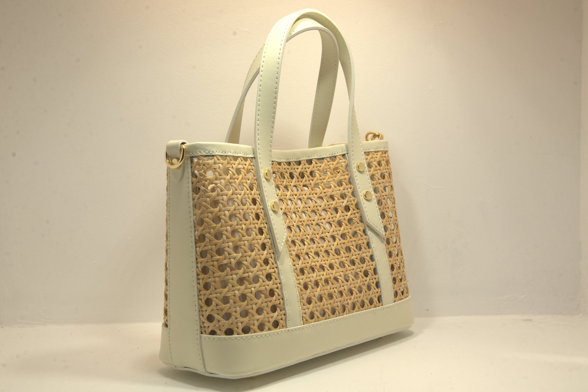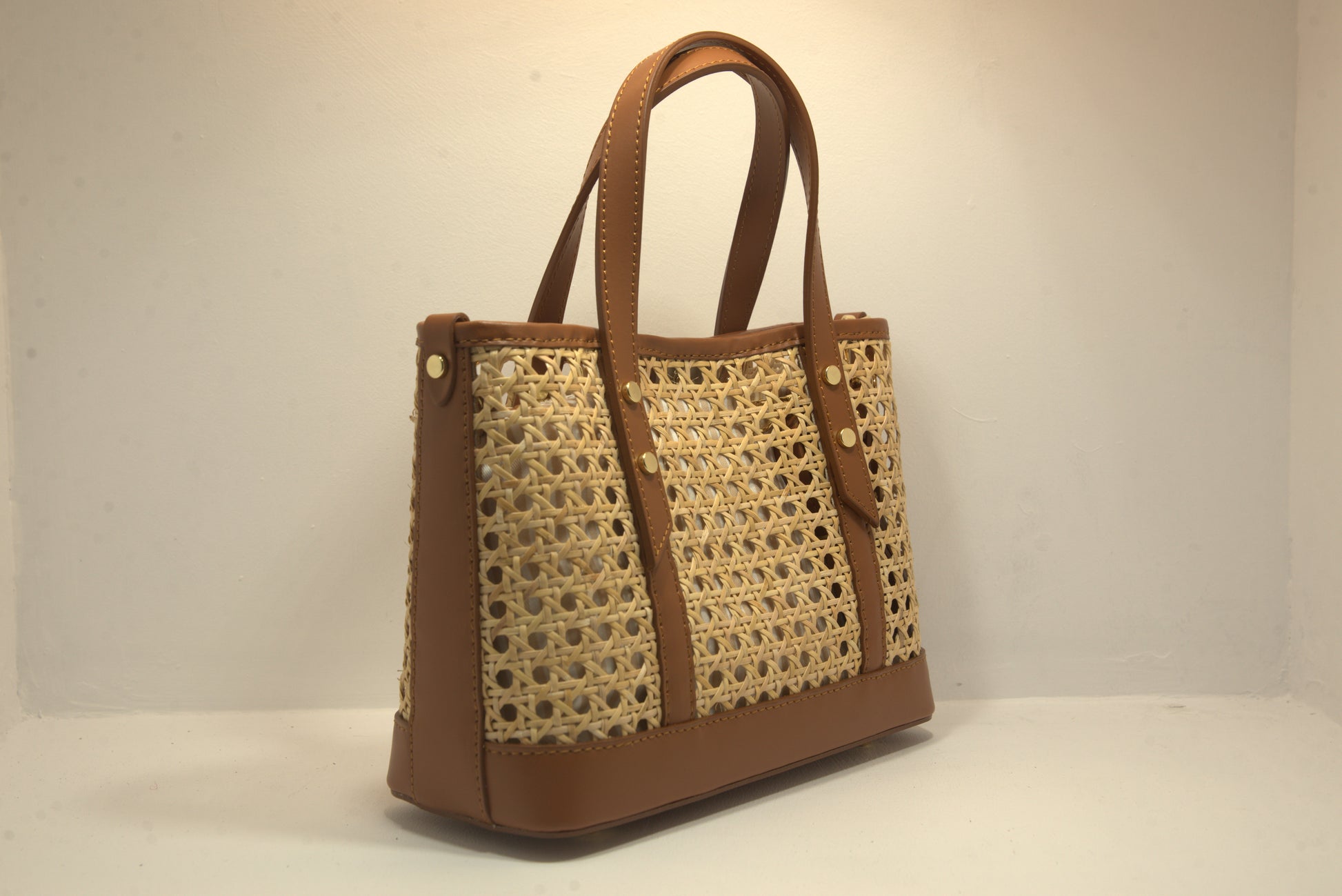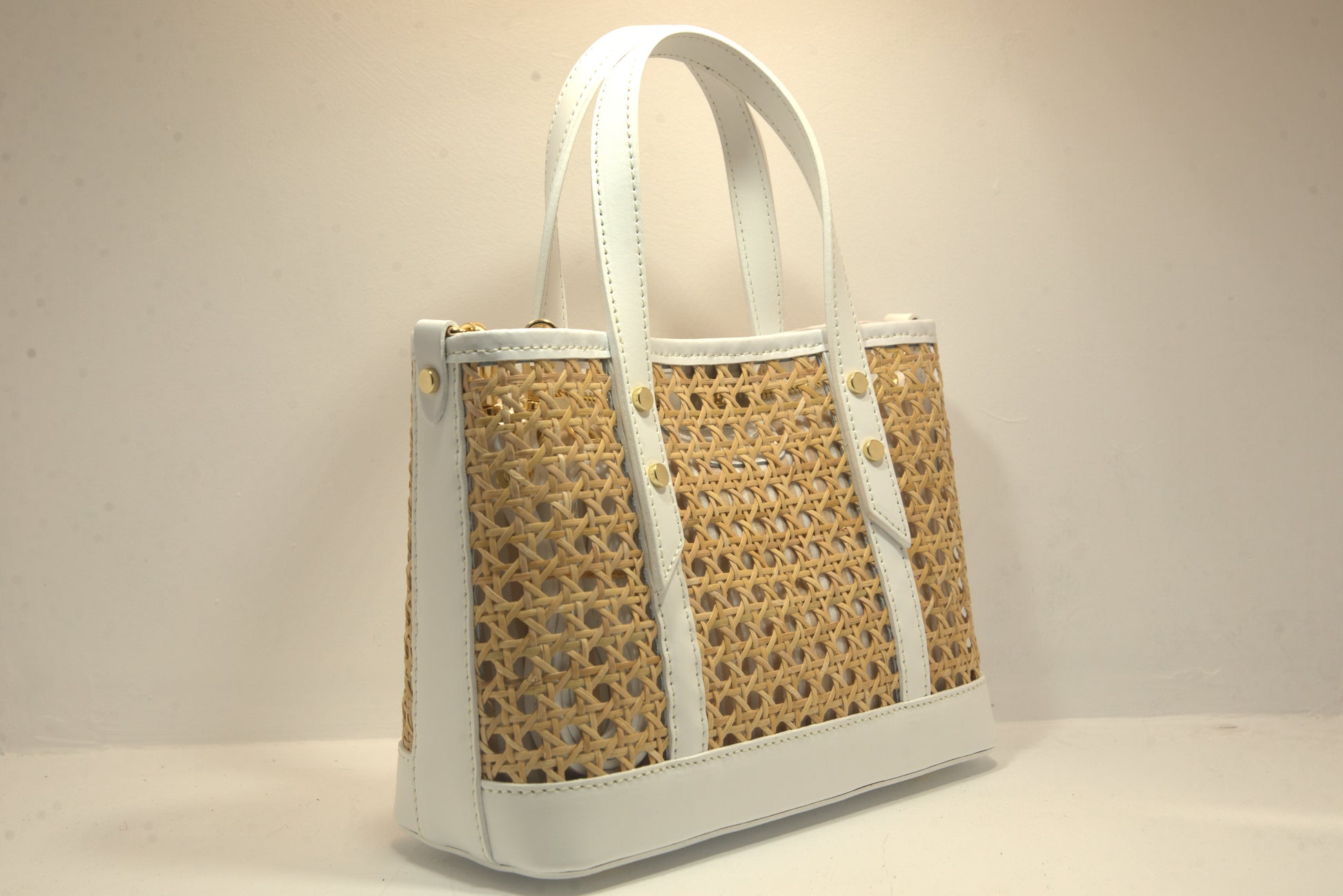 Geantă de damă din piele naturală și rafie – design artizanal cu detalii elegante