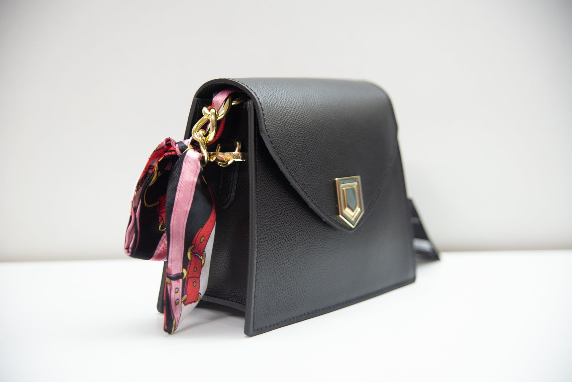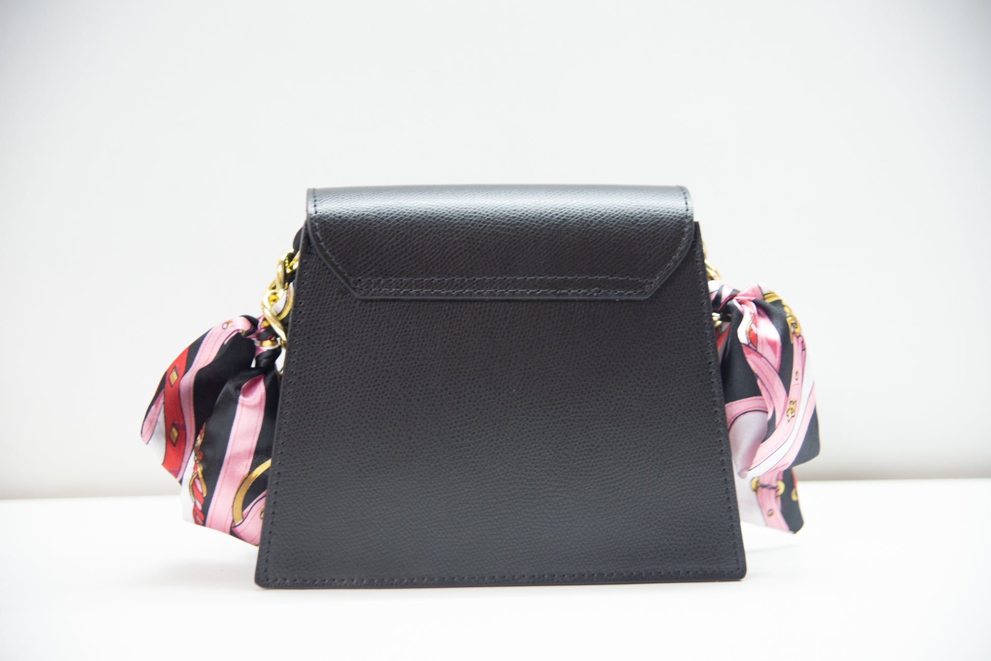 Descoperă rafinamentul absolut cu poseta Scarlet Charm. Confecționată din piele neagră de cea mai înaltă calitate, această posetă emană un aer de sofisticare și stil. Închizătoarea aurie adaugă un accent de lux, în timp ce fularul colorat, cu nuanțe de roșu și roz, aduce o notă de vivacitate și eleganță. Perfectă pentru orice ocazie, Scarlet Charm este accesoriul ideal pentru femeia modernă care apreciază atât funcționalitatea, cât și estetica. Cu un design atemporal și detalii atent lucrate, această posetă va deveni cu siguranță piesa de rezistență a garderobei tale.